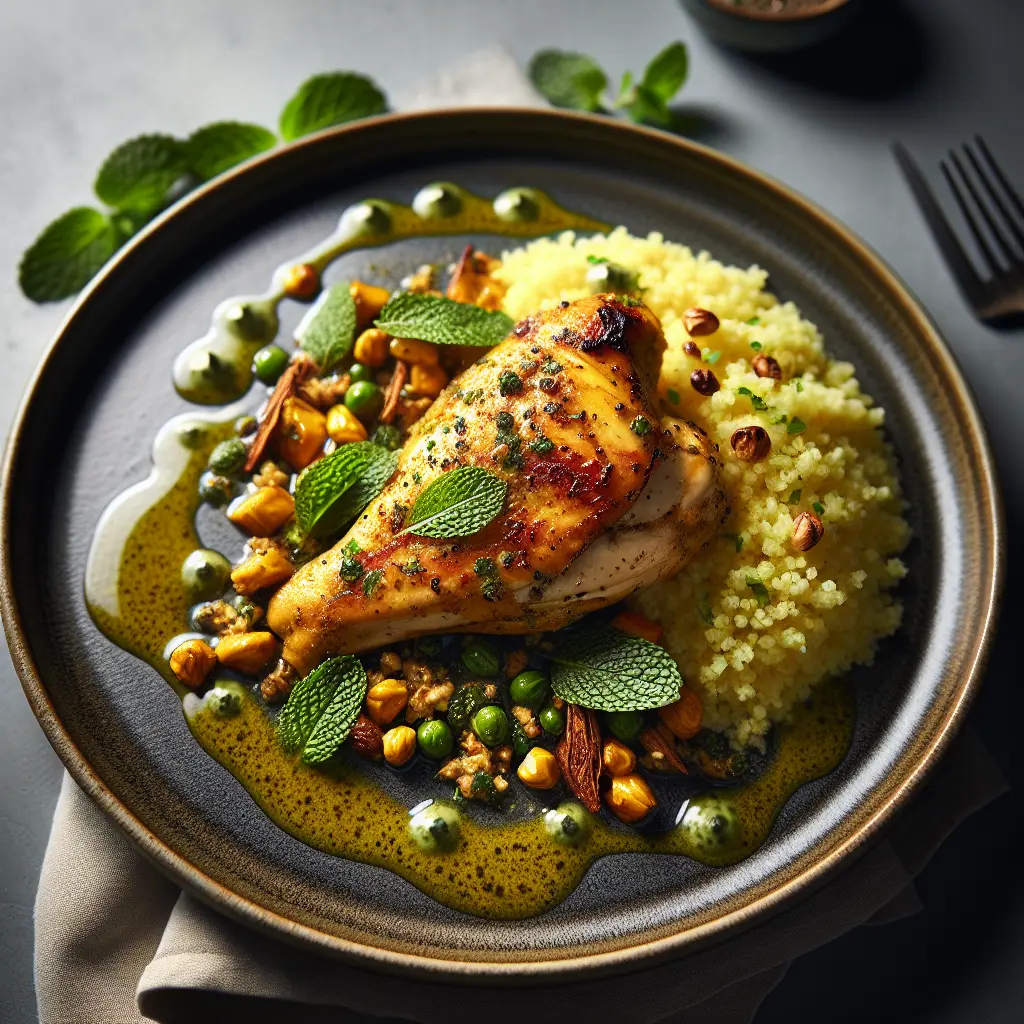 Saffron-Cardamom Chicken with Mint Couscous is a delightful dish that....