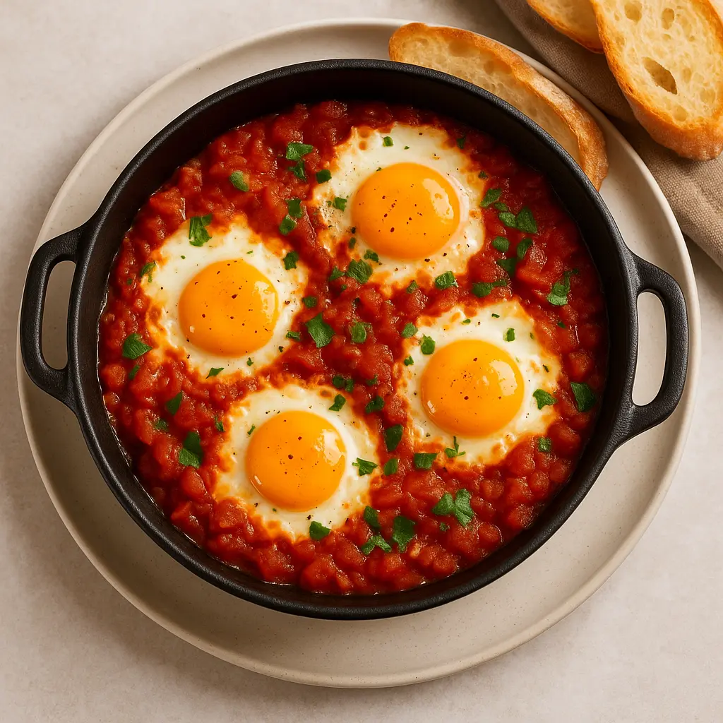 Shakshuka is a flavorful dish made with eggs simmered in a rich tomato-based sauce. It is a popular choice for breakfast or brunch, offering a hearty and satisfying meal. The combination of tomatoes, onions, and spices creates a delicious base, while the eggs provide protein and texture. This dish is simple to prepare and can be served with bread for dipping. Shakshuka is not only filling but also versatile, as you can adjust the seasonings or add vegetables according to taste. It is a comforting recipe enjoyed worldwide for its bold and vibrant flavors.