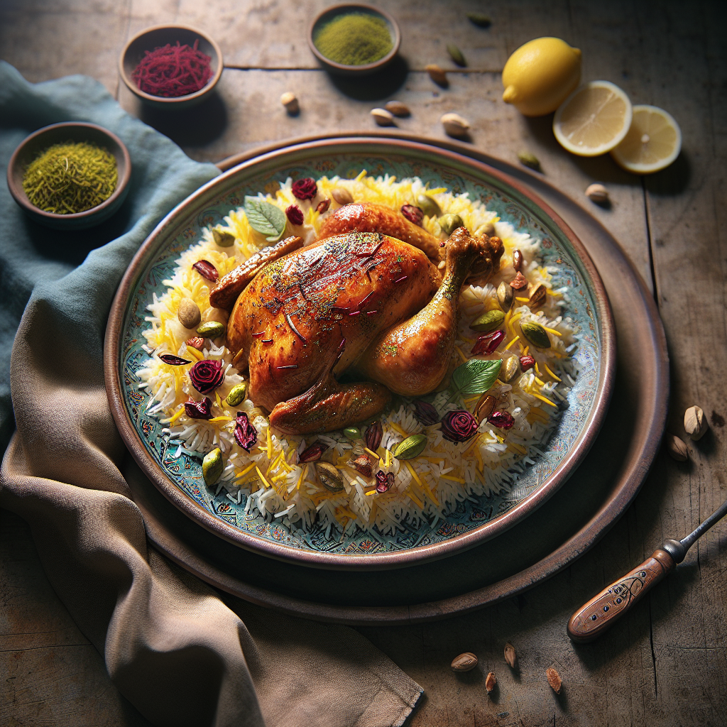 This Persian Saffron & Rosewater Chicken with Pistachio Rice is....