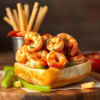 Classic Louisiana-style Shrimp Po’ Boy featuring crispy fried shrimp piled into a crusty French roll with shredded lettuce, tomatoes, and tangy remoulade sauce. Crunchy, saucy, and full of Southern flavor.