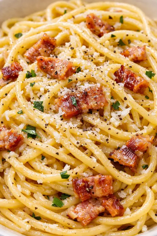 Remove from heat, add the egg and cheese mixture, and stir quickly to create a creamy sauce without scrambling the eggs. Add a little reserved pasta water if needed.