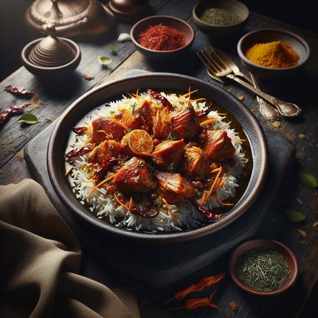 Sumac-Coconut Chicken with Pomegranate Almond Pilaf is a delightful fusion dish that combines the tangy, citrusy flavor of sumac with the creamy richness of coconut milk. Originating from the Middle East and infused with tropical elements, this dish offers a unique taste profile that is both vibrant and comforting. The chicken is marinated and cooked to tender perfection, while the pilaf is a fragrant mix of basmati rice, sweet pomegranate seeds, and crunchy almonds. This dish is loved for its harmonious blend of textures and flavors, making it a perfect choice for those seeking an exotic yet comforting meal. It’s a visually stunning dish that brings a burst of color and flavor to any dinner table.