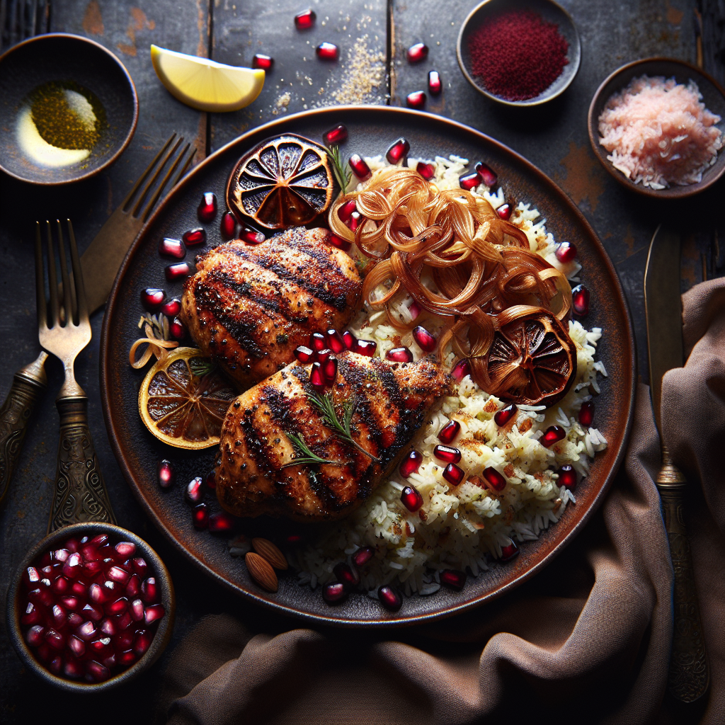Sumac-Coconut Chicken with Pomegranate Almond Pilaf