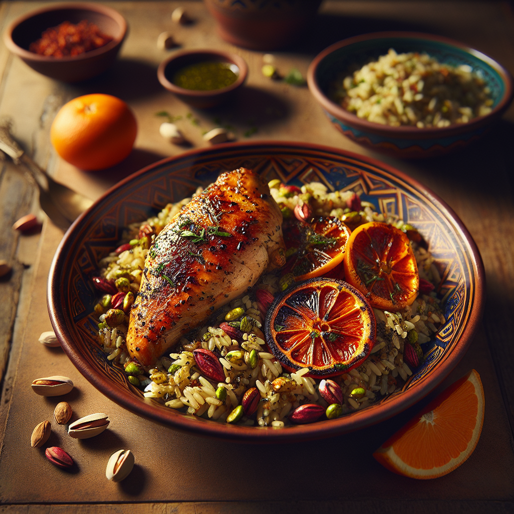 Sumac & Orange Blossom Chicken with Pistachio Herb Orzo is a delightful fusion that brings together the tangy flavors of Middle Eastern cuisine with a touch of floral sweetness. The marinade, infused with sumac and orange blossom water, gives the chicken a unique and aromatic taste that is both refreshing and savory. Paired with a nutty pistachio herb orzo, this dish offers a harmonious balance of textures and flavors. The earthy pistachios and fresh herbs create a vibrant base that complements the tender, juicy chicken. Loved for its exotic yet comforting profile, this dish is perfect for family gatherings or a special lunch treat. Its colorful presentation and aromatic allure make it a favorite among those seeking to explore new culinary horizons.