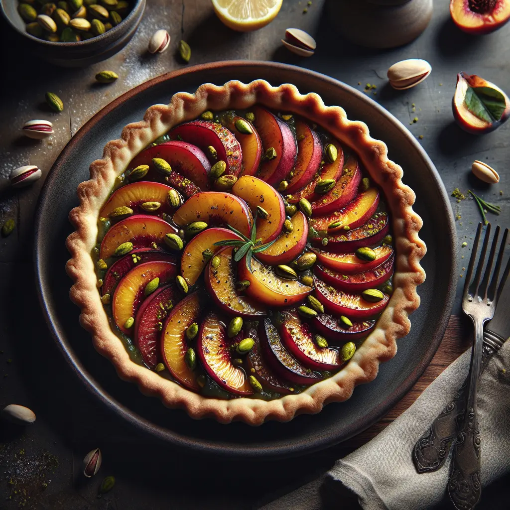 The Sumac-Scented Nectarine and Pistachio Breakfast Tart is a delightful fusion of Middle Eastern and Western flavors. This tart combines the tangy taste of sumac with the sweetness of ripe nectarines, creating a vibrant and refreshing flavor profile. The pistachios add a nutty crunch that perfectly complements the buttery tart crust. Often enjoyed in the summer, this tart is a favorite for its unique combination of spices and fruits, making it a refreshing start to the day. The aromatic sumac enhances the natural sweetness of the nectarines, providing an exotic twist that leaves a lasting impression. People love it for its balance of tartness and sweetness, its beautiful presentation, and the way it elevates the breakfast experience.
