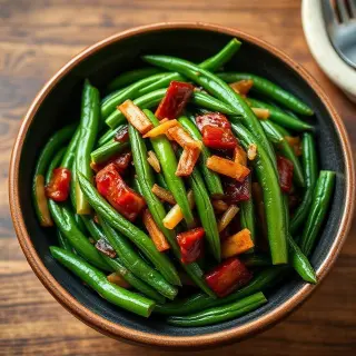 Szechuan Green Beans is a bold and flavorful dish known for its savory, slightly spicy taste and satisfying texture. This recipe combines blistered green beans with a rich sauce made from garlic, soy sauce, and chili elements, creating a balance of heat and umami. The cooking method quickly stir-fries the beans to maintain their crunch while allowing them to absorb deep flavors. Often served as a side dish, it pairs well with rice or noodles and brings a restaurant-style experience to home cooking. Its simple preparation and vibrant taste make it a favorite for weeknight meals or special gatherings.