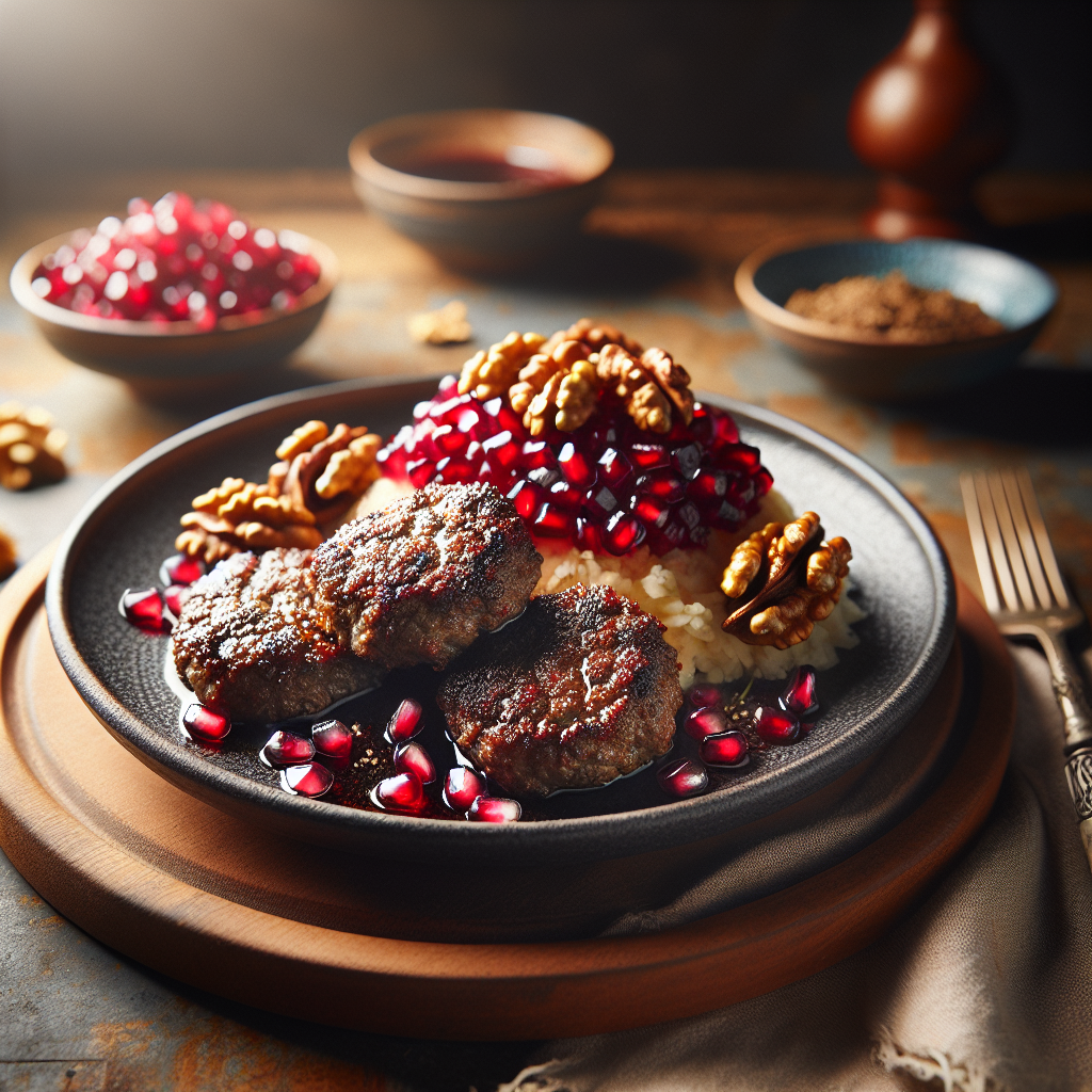 Turkish Sumac Beef Kofta is a flavorful dish that combines ground beef with spices like sumac, cumin, and coriander for a savory taste. Paired with a tangy pomegranate walnut relish, it offers a delightful contrast of flavors. Originating from the rich culinary traditions of Turkey, these koftas are beloved for their juicy texture and aromatic spices. The addition of sumac gives the beef a unique, slightly sour tang, enhancing its overall taste profile. This dish is often enjoyed by those who love Middle Eastern cuisine for its vibrant flavors and is perfect for a family dinner or special occasion.