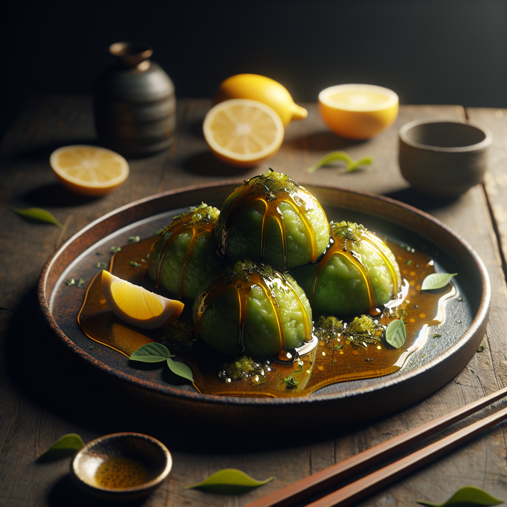 Yuzu Shiso Kabocha Mochi is a delightful Japanese dish that combines the sweet and nutty flavor of kabocha squash with the aromatic tang of yuzu and the refreshing hint of shiso leaves. Originating from Japan, this mochi offers a unique blend of textures and flavors. The kabocha provides a creamy and slightly sweet base, while the yuzu adds a citrusy zest, and the shiso brings a minty freshness that is beloved in Japanese cuisine. This dish is perfect for those who crave something different yet comforting. Enjoyed as a snack or a dessert, Yuzu Shiso Kabocha Mochi is a testament to the harmonious blending of traditional Japanese ingredients, delivering a taste experience that is both exotic and familiar.