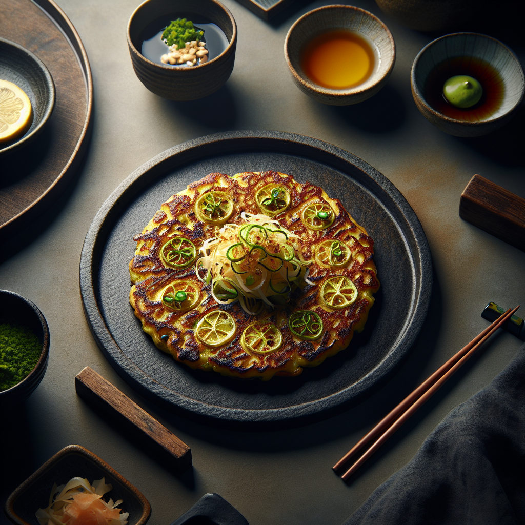 Yuzu Shiso Kinoko Okonomiyaki is a delightful fusion of traditional Japanese pancakes known as okonomiyaki. This dish combines the refreshing citrusy notes of yuzu with the aromatic herbaceous essence of shiso leaves, and the earthy umami of assorted mushrooms, or kinoko. Originating from the streets of Osaka, okonomiyaki is often described as a Japanese savory pancake or pizza. The unique addition of yuzu and shiso gives this version a refreshing twist, making it both light and satisfying. The batter, enriched with cabbage and mushrooms, is cooked to a crispy finish, then drizzled with savory sauce, mayonnaise, and sprinkled with bonito flakes. People love it for its delightful combination of flavors and textures, offering a taste of Japan’s culinary creativity.