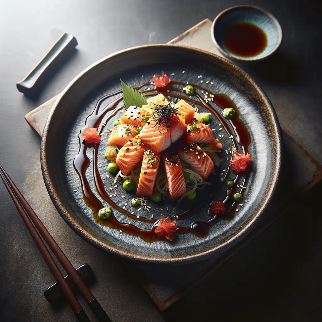 Yuzu Shiso Salmon Tataki is a vibrant and refreshing Japanese dish that combines the citrusy notes of yuzu with the aromatic scent of shiso leaves. This dish features lightly seared salmon, which is marinated in a blend of yuzu juice, soy sauce, and a hint of ginger. The salmon is then garnished with fresh shiso leaves, adding a unique herbal flavor. Often enjoyed as an appetizer or a light main course, this dish is loved for its delicate balance of flavors and elegant presentation. The combination of the rich, buttery salmon with the zesty yuzu and fragrant shiso makes it a favorite among seafood lovers seeking an authentic taste of Japan.