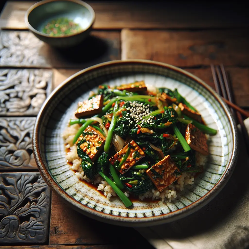 Doenjang Tempeh and Mizuna Stir-fry is a delightful fusion of....