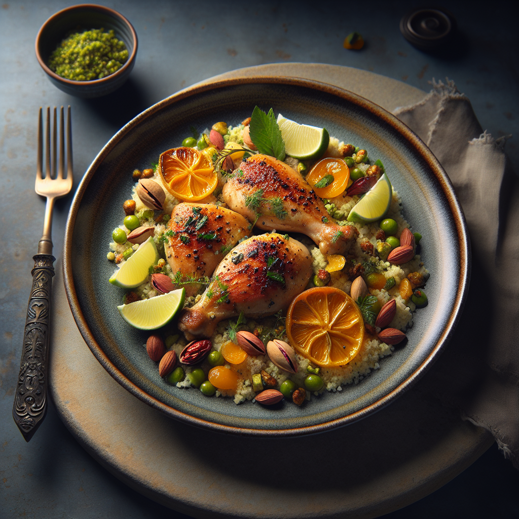 Lime & Coriander Chicken with Apricot Pistachio Couscous is a....
